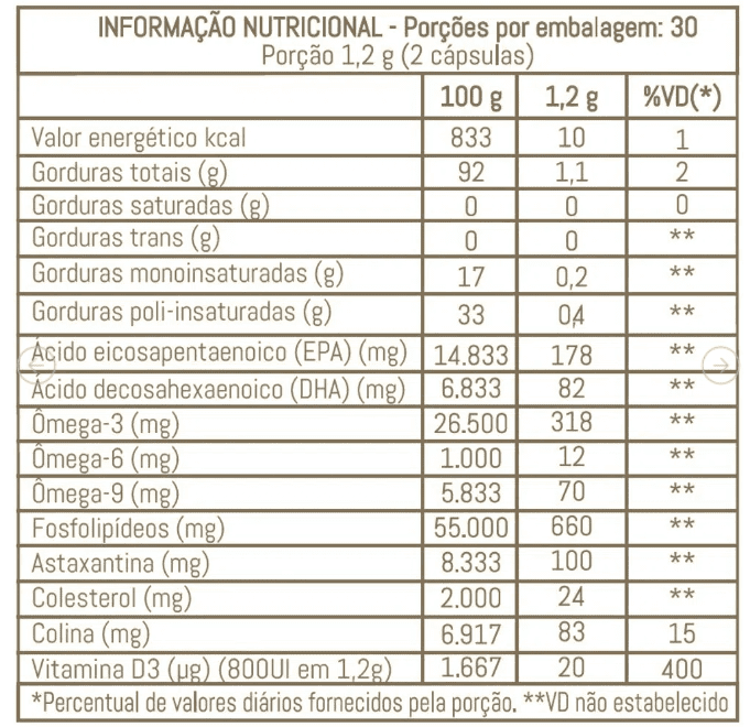 Os Ômegas 3 encontrados no óleo de krill possuem maior biodisponibilidade, pois são ligados a fosfolipídeos que são constituintes naturais das nossas membranas celulares. Essa associação promove uma alta absorção.