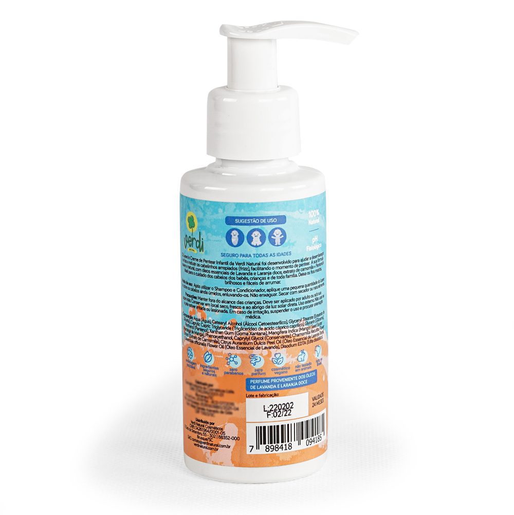 O Leave In Creme de Pentear Infantil Natural de Lavanda, Laranja Doce, Camomila e Pantenol foi desenvolvido para ajudar a desenbaraçar os fios e reduzir os cabelinhos arrepiados (frizz), facilitando o momento de pentear.
